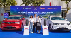 Ban lãnh đạo DRC và Vinfast tại một hoạt động hợp tác giữa 2 đơn vị trong năm 2024.